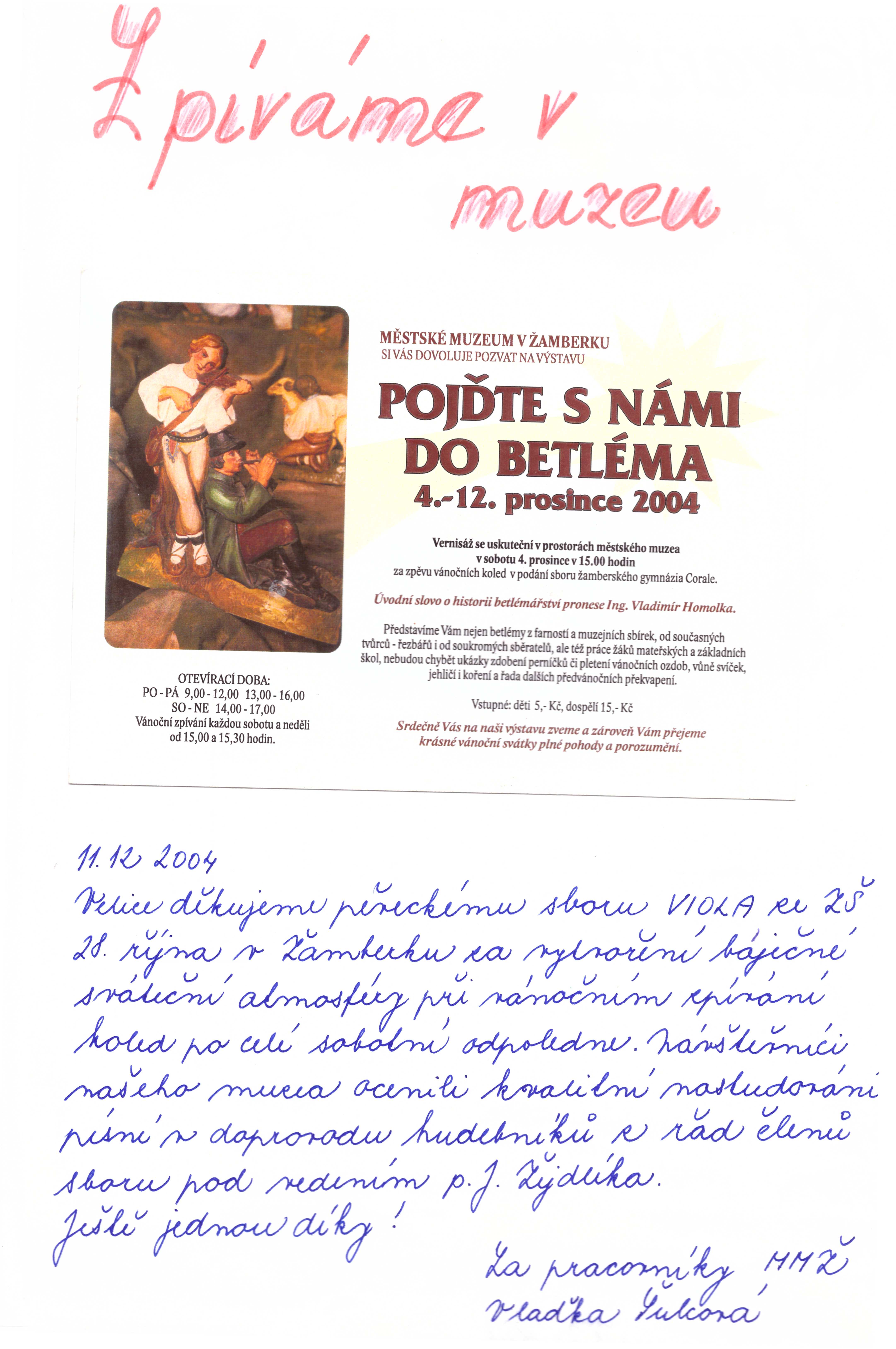 | 11. 12. 2004 | Zpívání v Žamberském muzeu |
