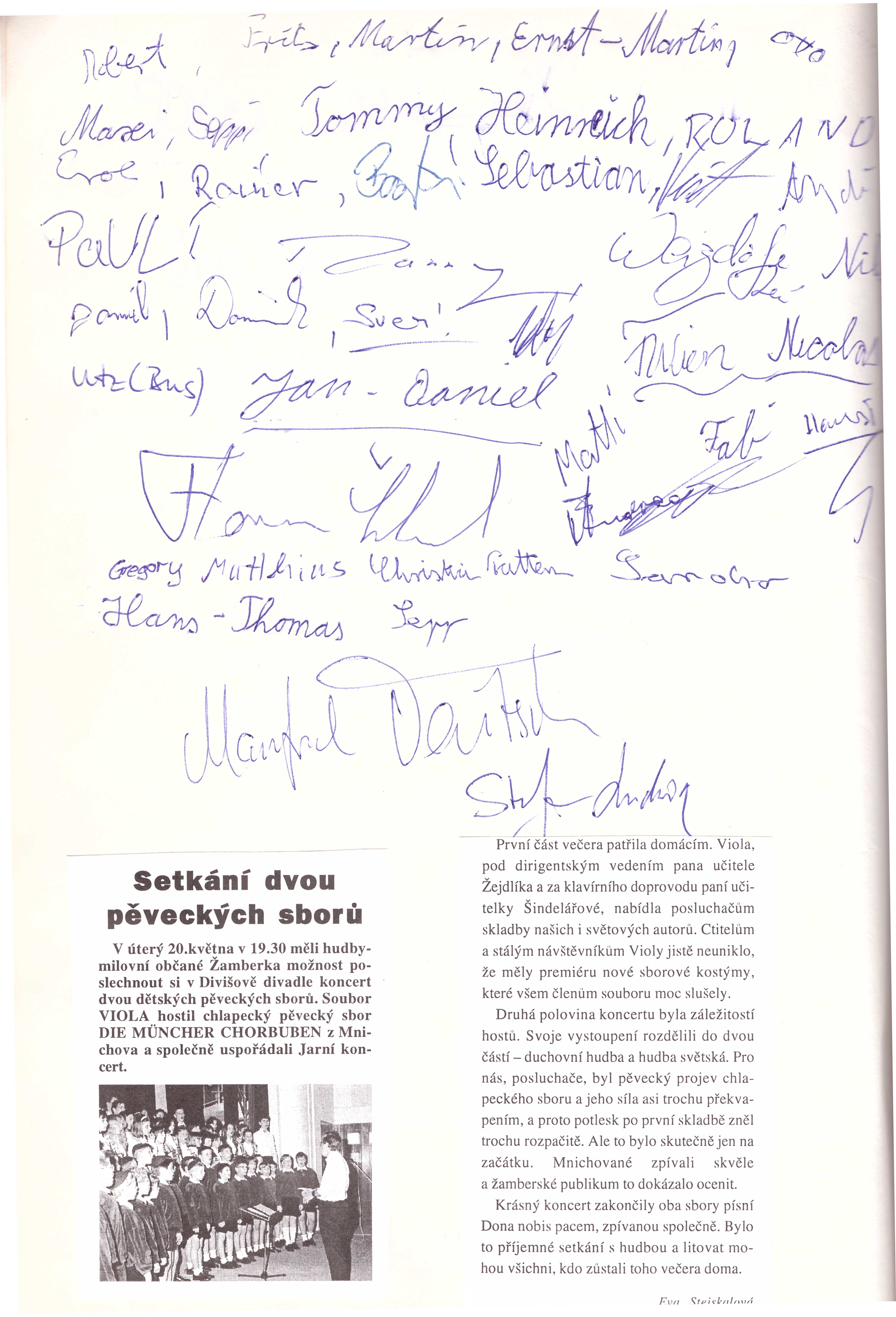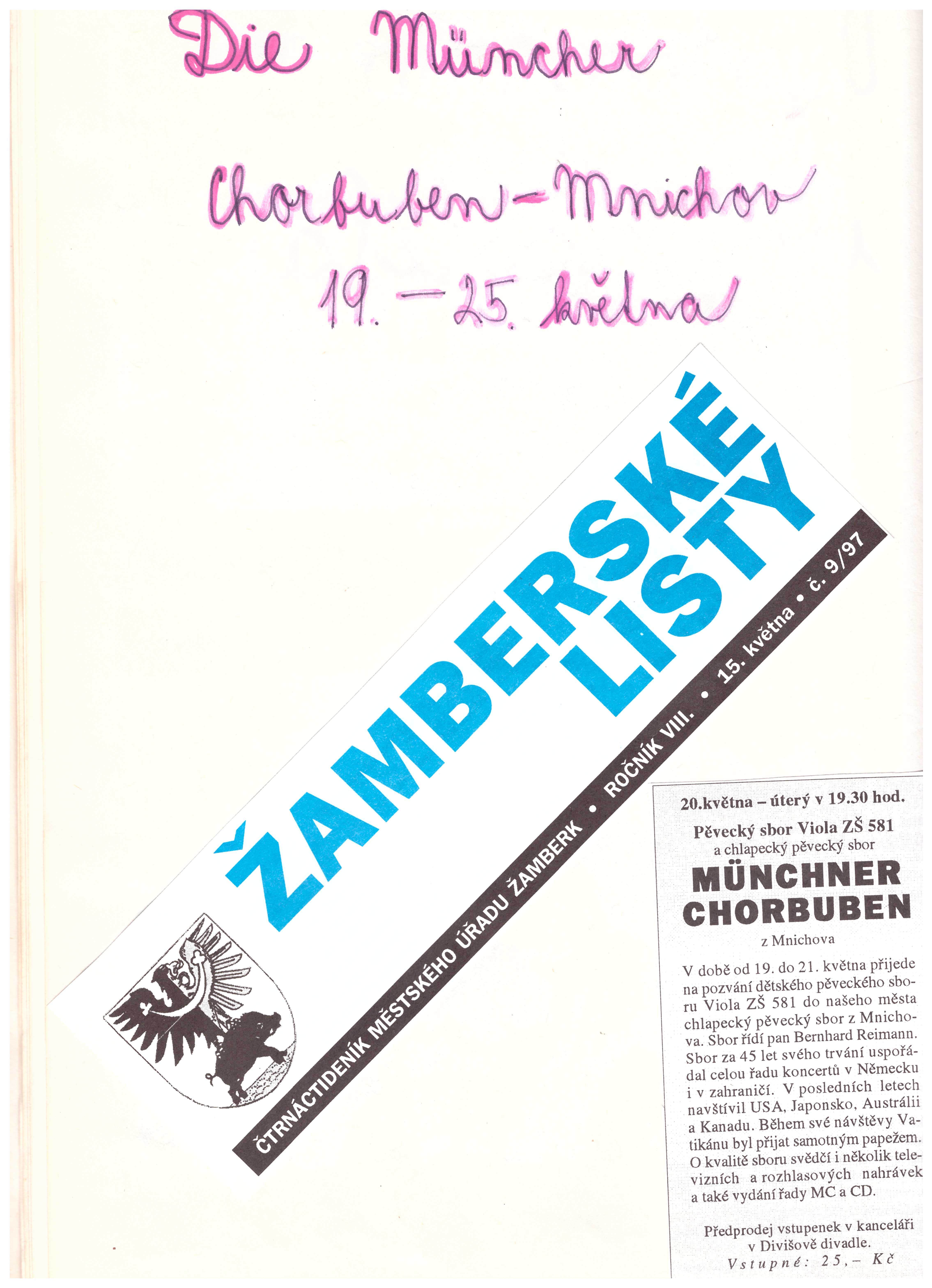 Návštěva chlapeckého pěveckého sboru Die Münchner Chorbuben – 19.–25. 5. 1997