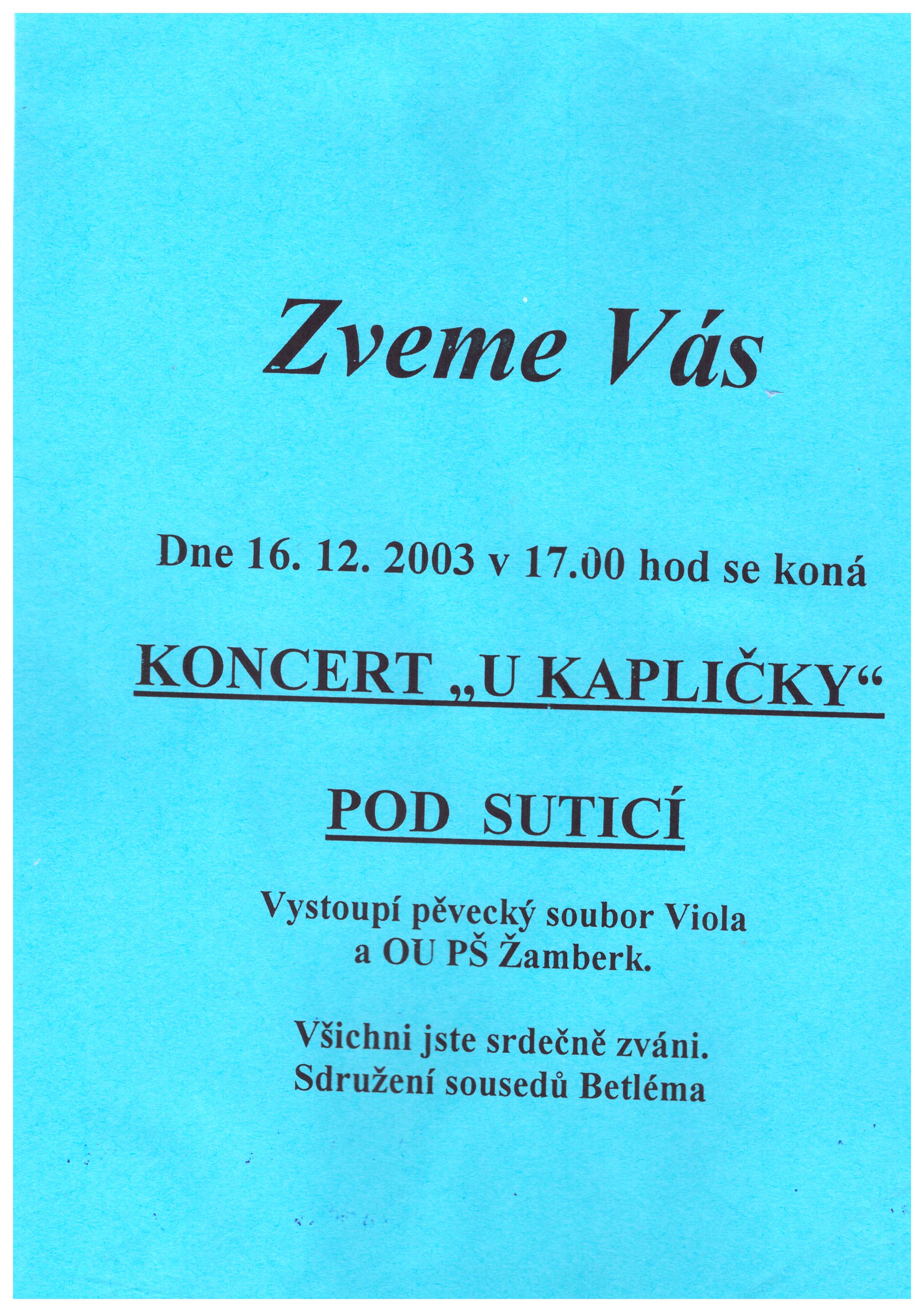 Koncert "U Kapličky" Pod Suticí – 16. 12. 2003
