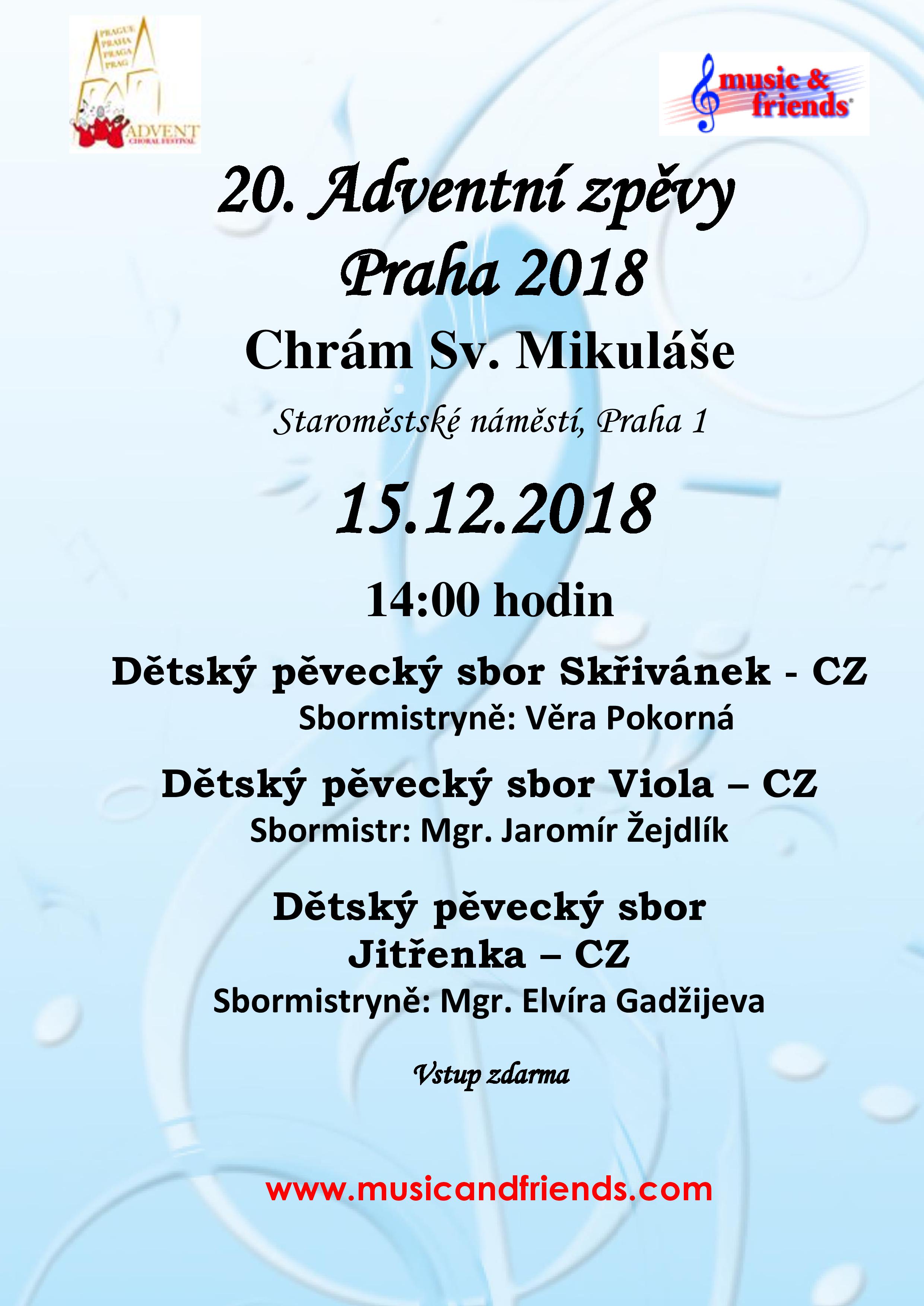 Adventní zpěvy Praha – 15. – 16. 12. 2018