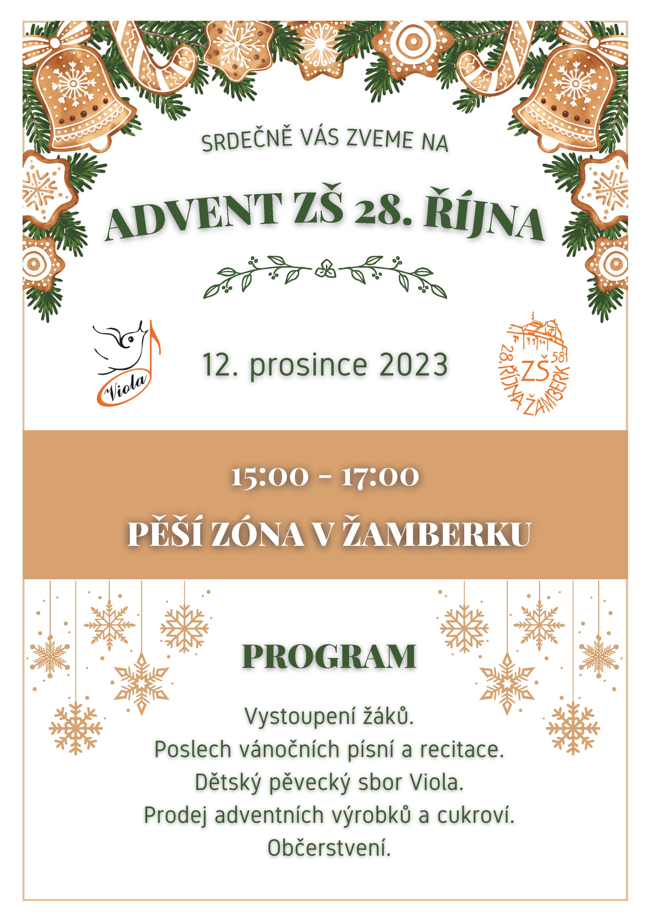 Advent ZŠ 28. října na pěší zóně v Žamberku – 12. 12. 2023