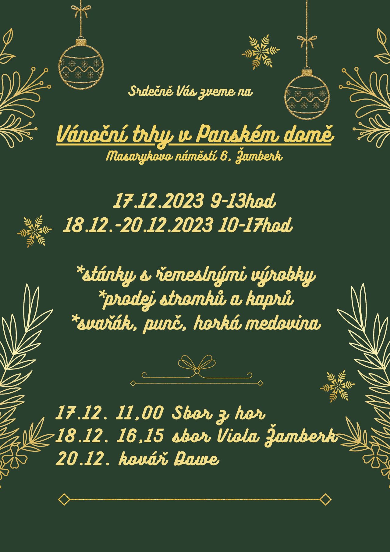 Vystoupení na Vánočních trzích v Panském domě – 18. 12. 2023