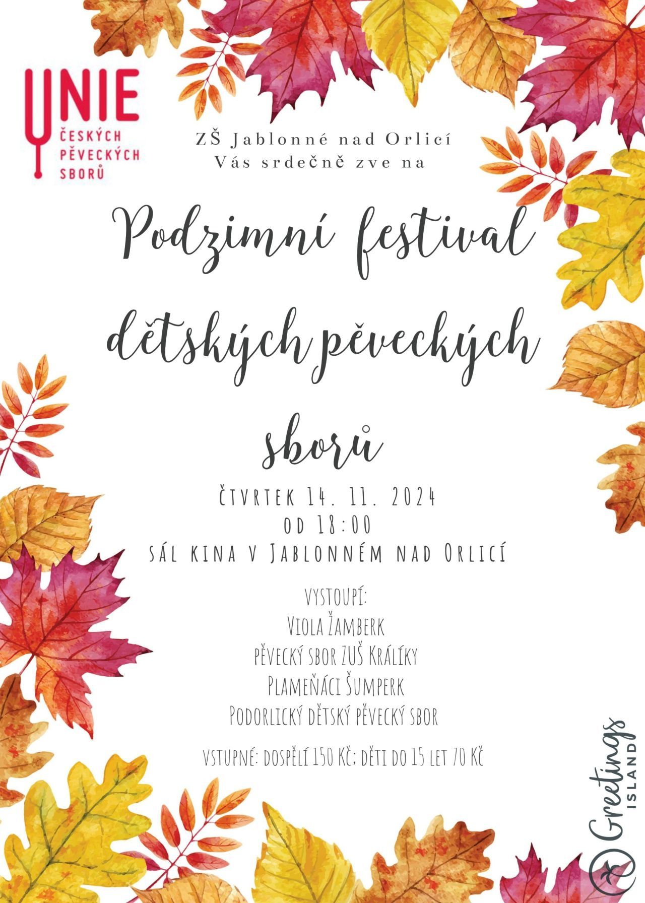 Podzimní festival dětských pěveckých sborů v Jablonném nad Orlicí – 14. 11. 2024