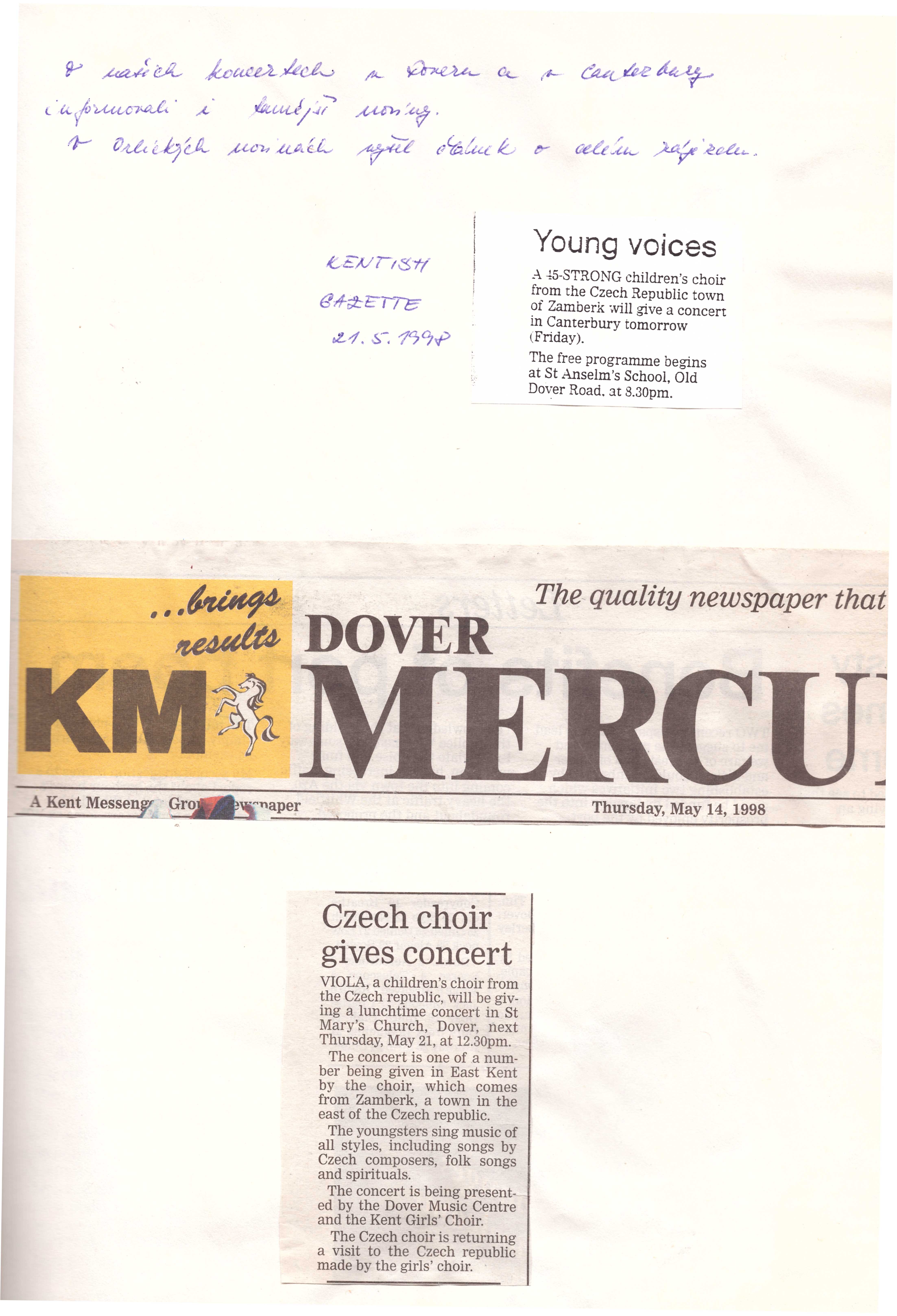 21. 5.: Z hudební školy jsme odjeli do Doveru, kde jsme také o půl jedné měli koncert v tamějším kostele St. Mary's Church.
