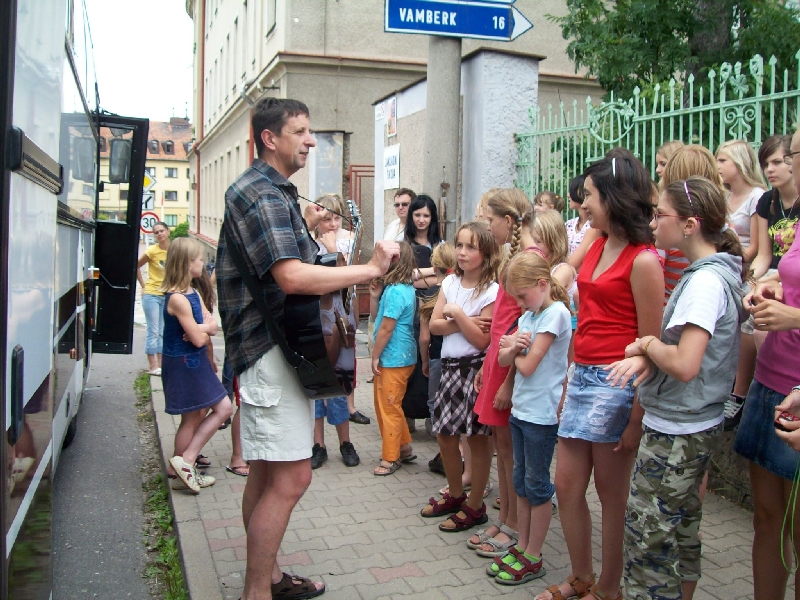 Na rozloučenou jsme rodičům ještě zazpívali Stánky a potom jsme už jen mávali z autobusu. Ještě při odjezdu si pan učitel zkontroloval, jestli máme všichni pasy, a mohlo se vyrazit.