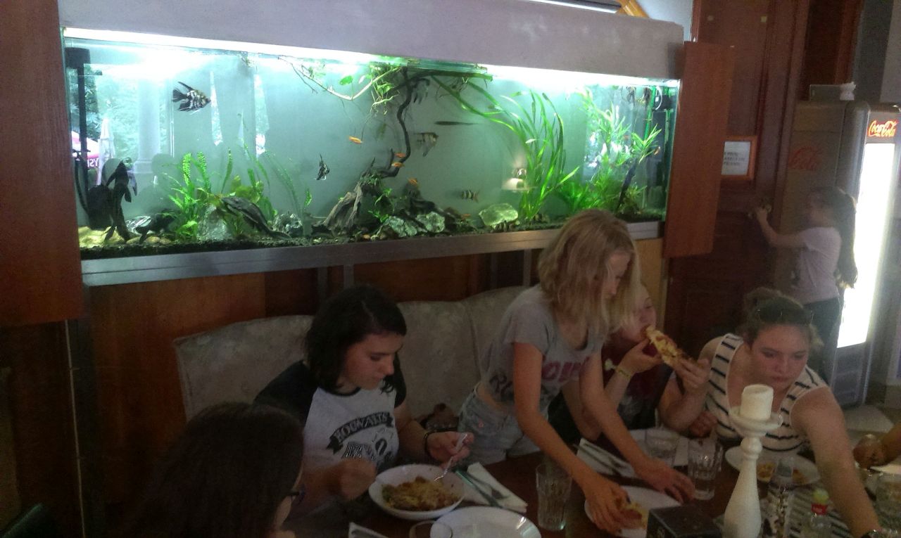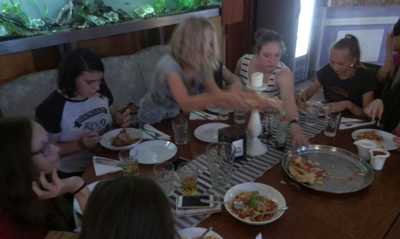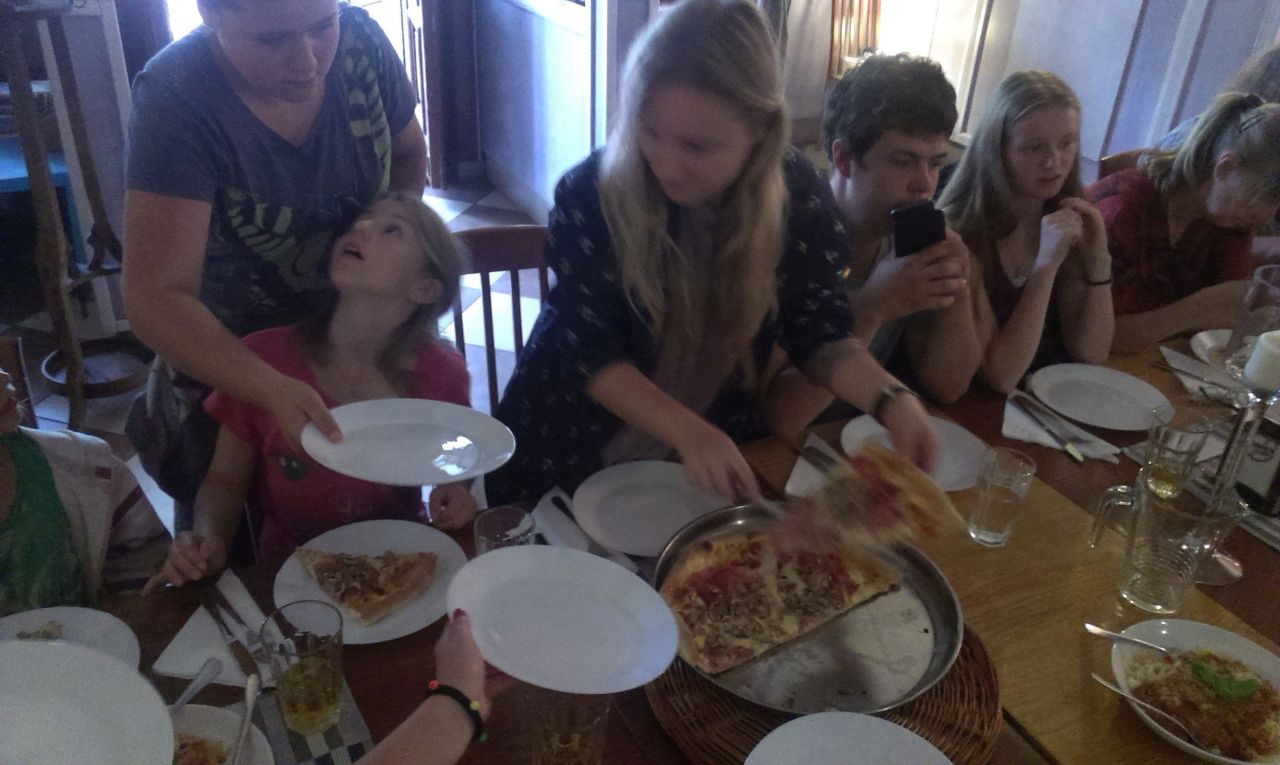 pak už hurá na oběd do jedné z místních pizzerií, to abychom se posilnili na první koncert. Uskutečnil se