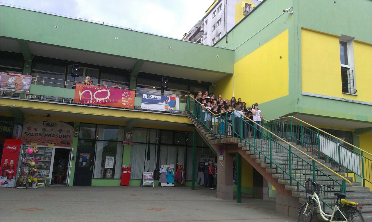 na schodech před kulturním domem.