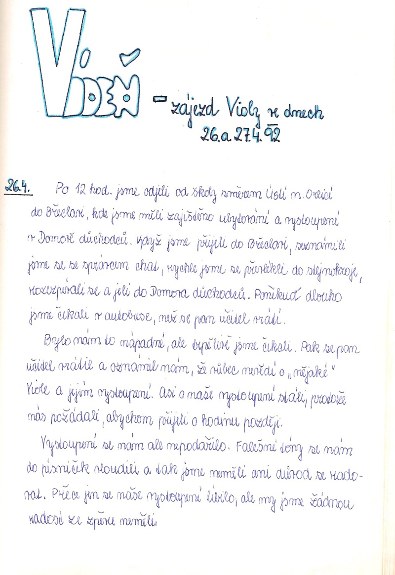 vůbec nevědí o „nějaké“ Viole a jejím vystoupení. Asi o naše vystoupení stáli, protože nás požádali, abychom přijeli o hodinu