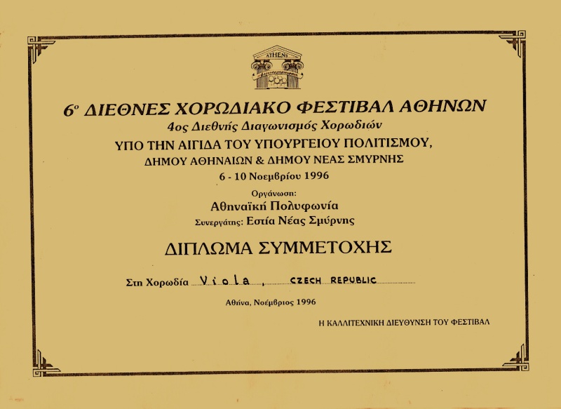 3. 11.: V tento den v 17 hodin jsme vyrazili směrem na Brno, Vídeň a Benátky. Naším cílem byl Mezinárodní festival v Athénách, kterého se zúčastnilo celkem 90 sborů z celého světa.